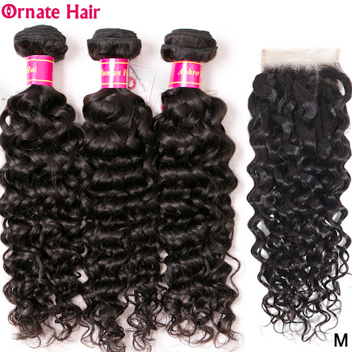 Wholesale Peruvian Hair Bundles With Closure Water Wave Bundles With Closure Non-Remy Human Hair Bundles With Closure Middle Ratio