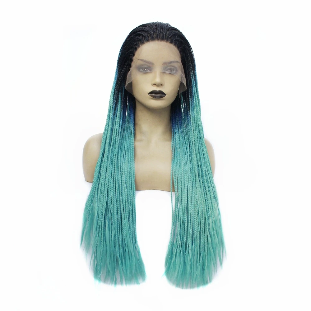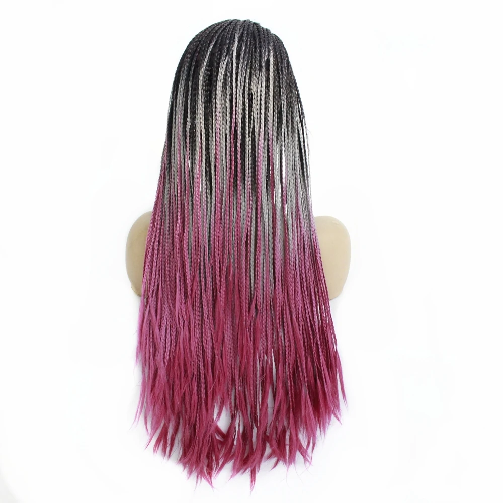 Cheap Dark Roots Ombre Grey Purple High Temperature Fiber Hair Natural Synthetic Lace Front Wig Long Braided Box Braids Wigs for Women