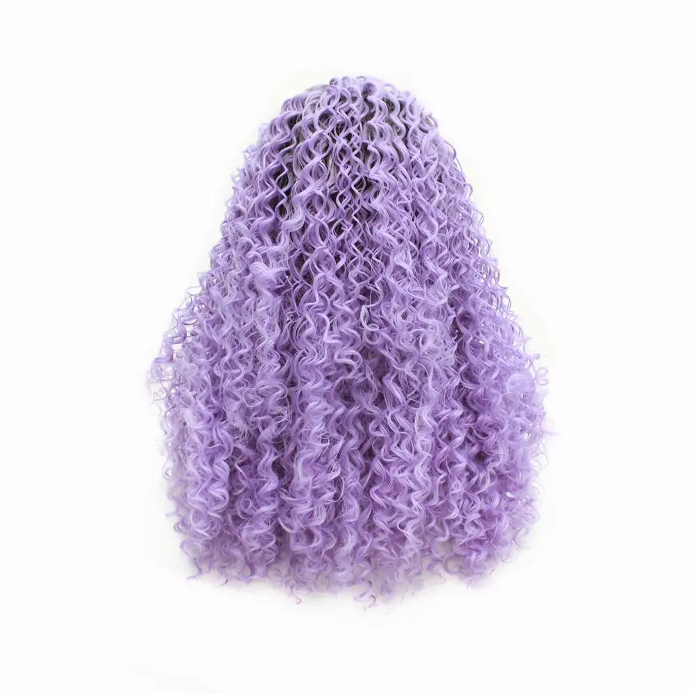 Free Shipping Two Tones Ombre Purple Long Kinky Curly Synthetic Lace Front Wigs 180% Heat Resistant Fiber Afro Curly Cosplay Wigs For Women