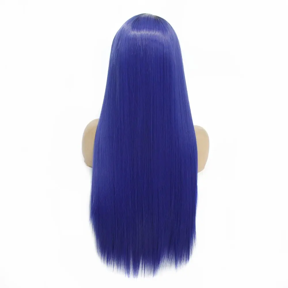 Free Shipping Fashion Ombre Blue Long Silky Straight Hair Heat Resistant Glueless Synthetic Lace Front Wigs for Black Women Middle Part 26inch