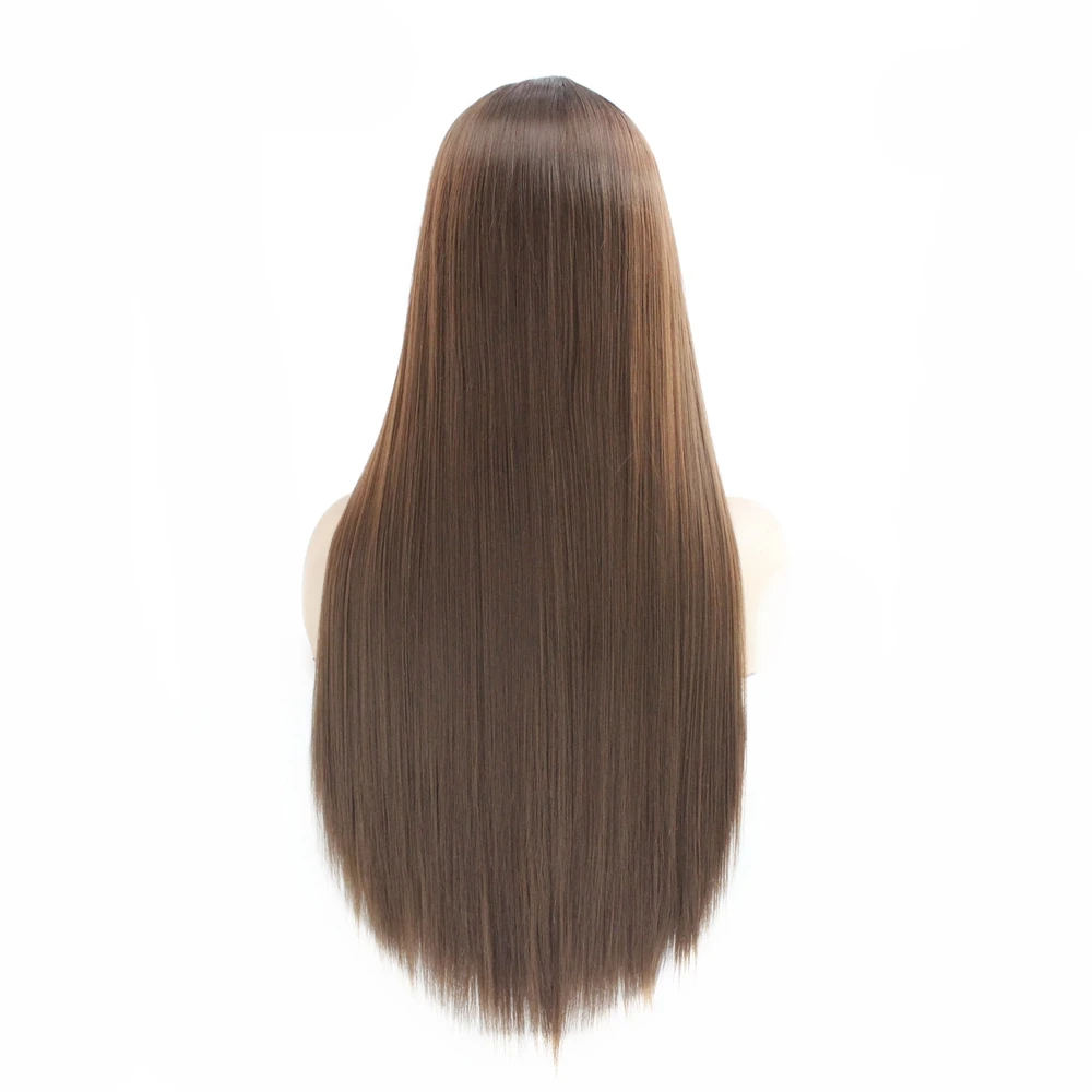 Get Synthetic Lace Front Wig Long Straight Ombre Brown Women's Wigs with Baby Hair Heat Resistant African American Wig Middle Part