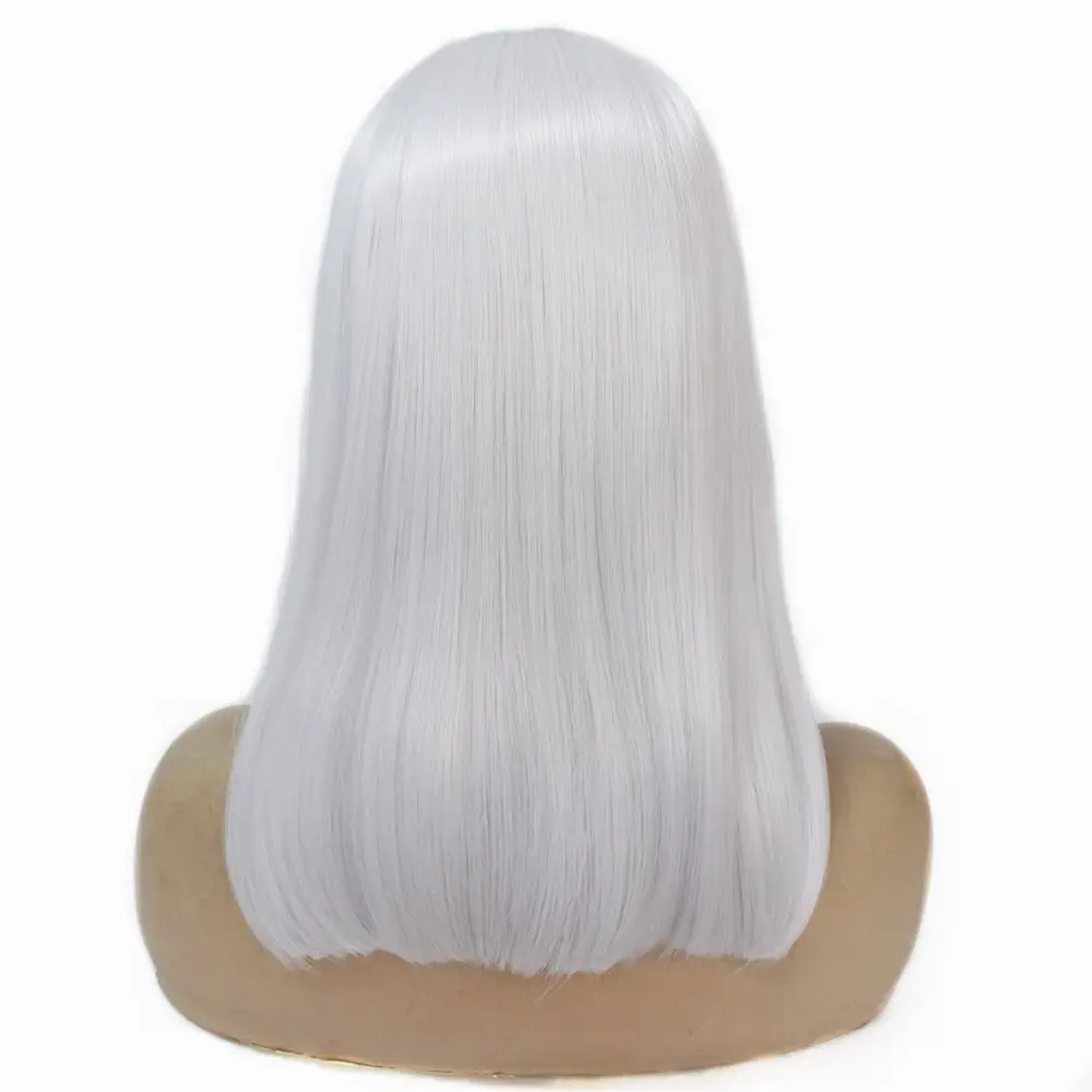 Get Short Straight Bob Lace Front Wig White Grey Heat Resistant Women's Hair Glueless Synthetic Lace Front Wig Middle Part 14inch