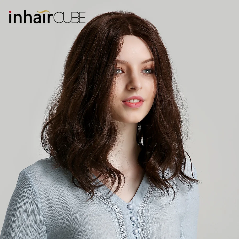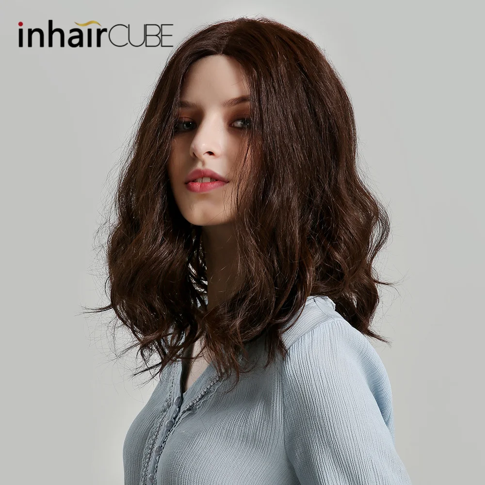 Get Inhaircube Natural Wave Synthetic Lace Front Wig Dark Brown Middle Part Breathable Cosplay Heat Resistant Wigs For Black Women